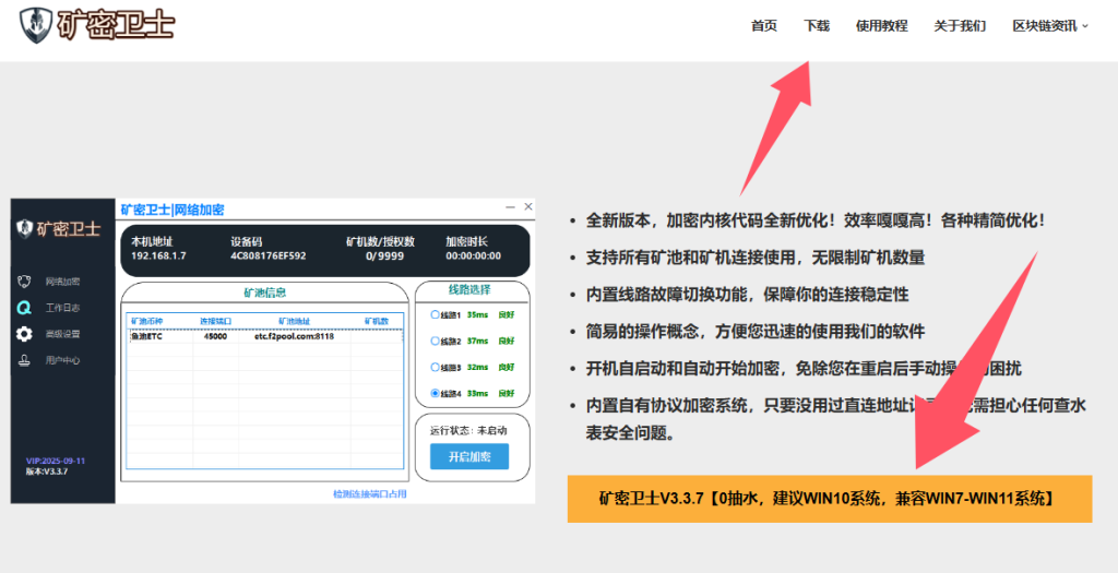 1.进入官网:www.kuangmi.cc 下载矿密卫士